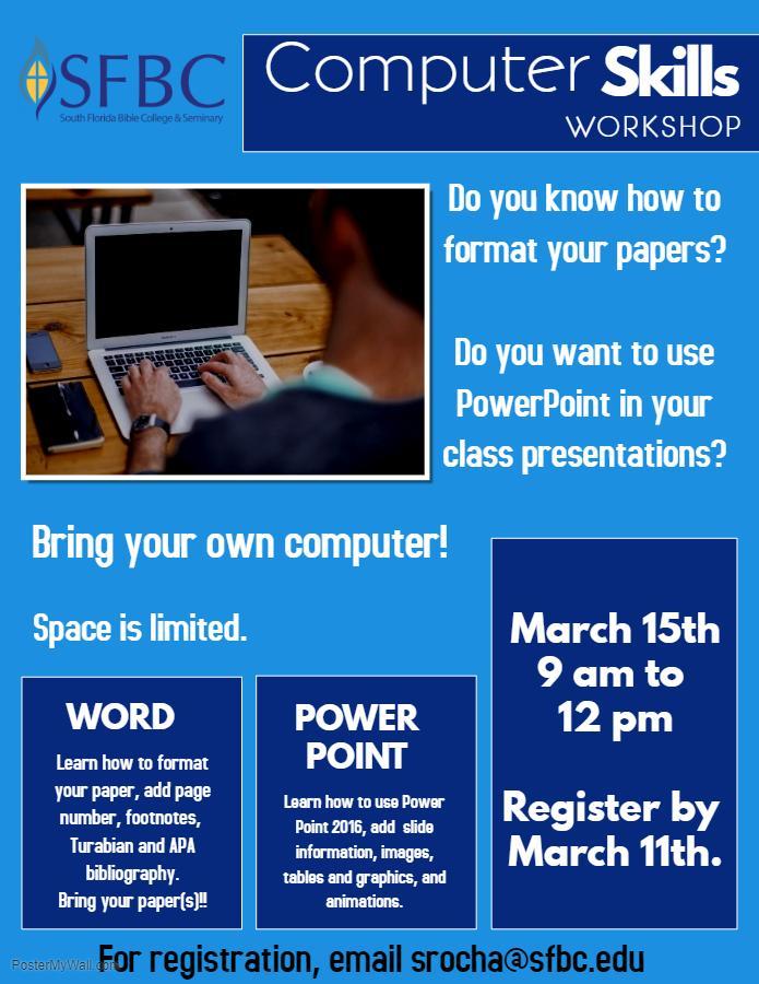 Space will be limited, so make sure to register with srocha@southfloridabiblecollege.org