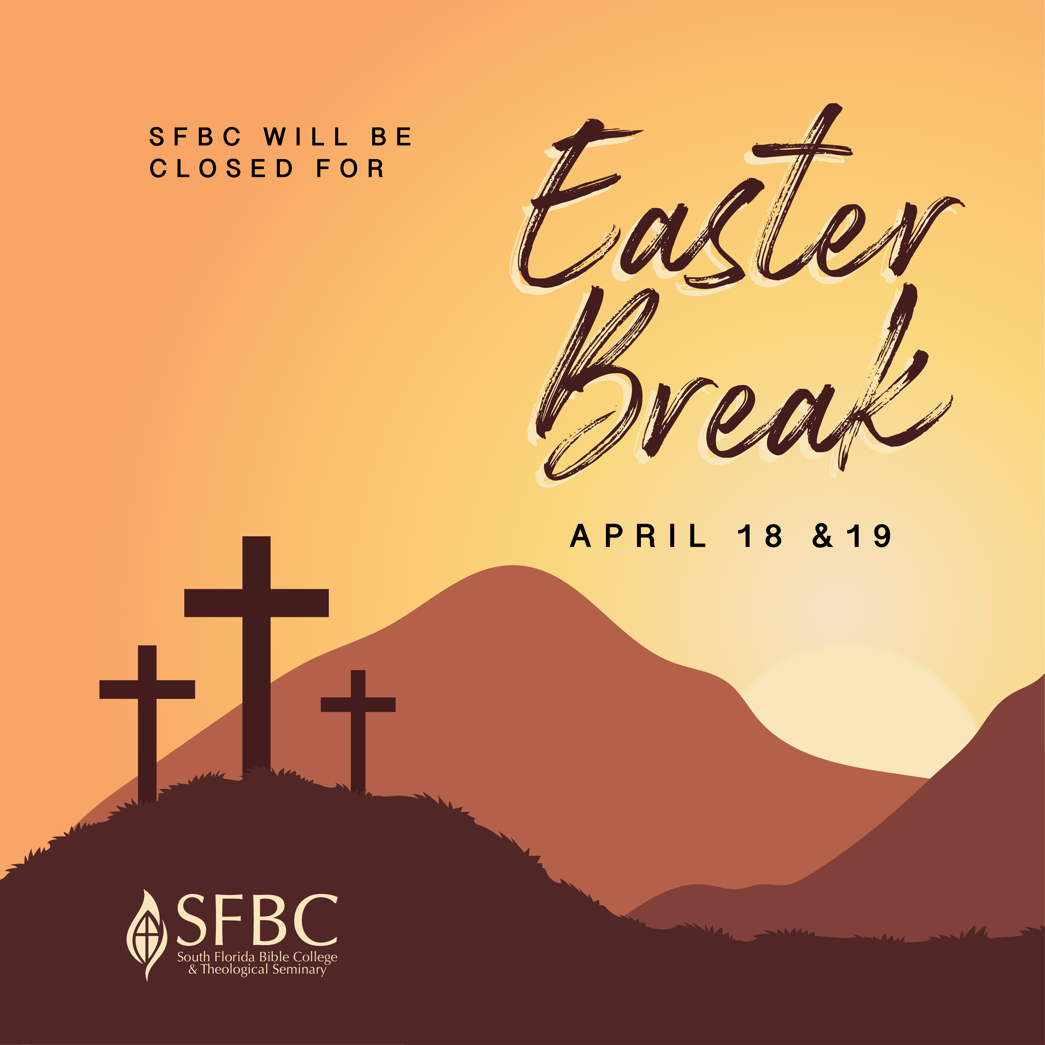 Easter Break April 18th & 19th. No classes and offices will be closed. Have a Great Easter Weekend :) webmaster2019-04-15T13:46:33-04:00